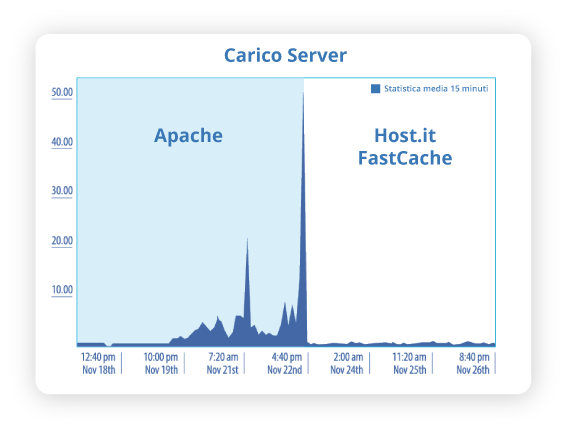Grazie all'integrazione tra il Web Server ed il CMS con cui è costruito il sito web, FastCache consente di staticizzare i contenuti del tuo sito web, riducendo la necessità di elaborare codice PHP e di chiamare il database. Questo si traduce in un sensibile miglioramento delle performance.